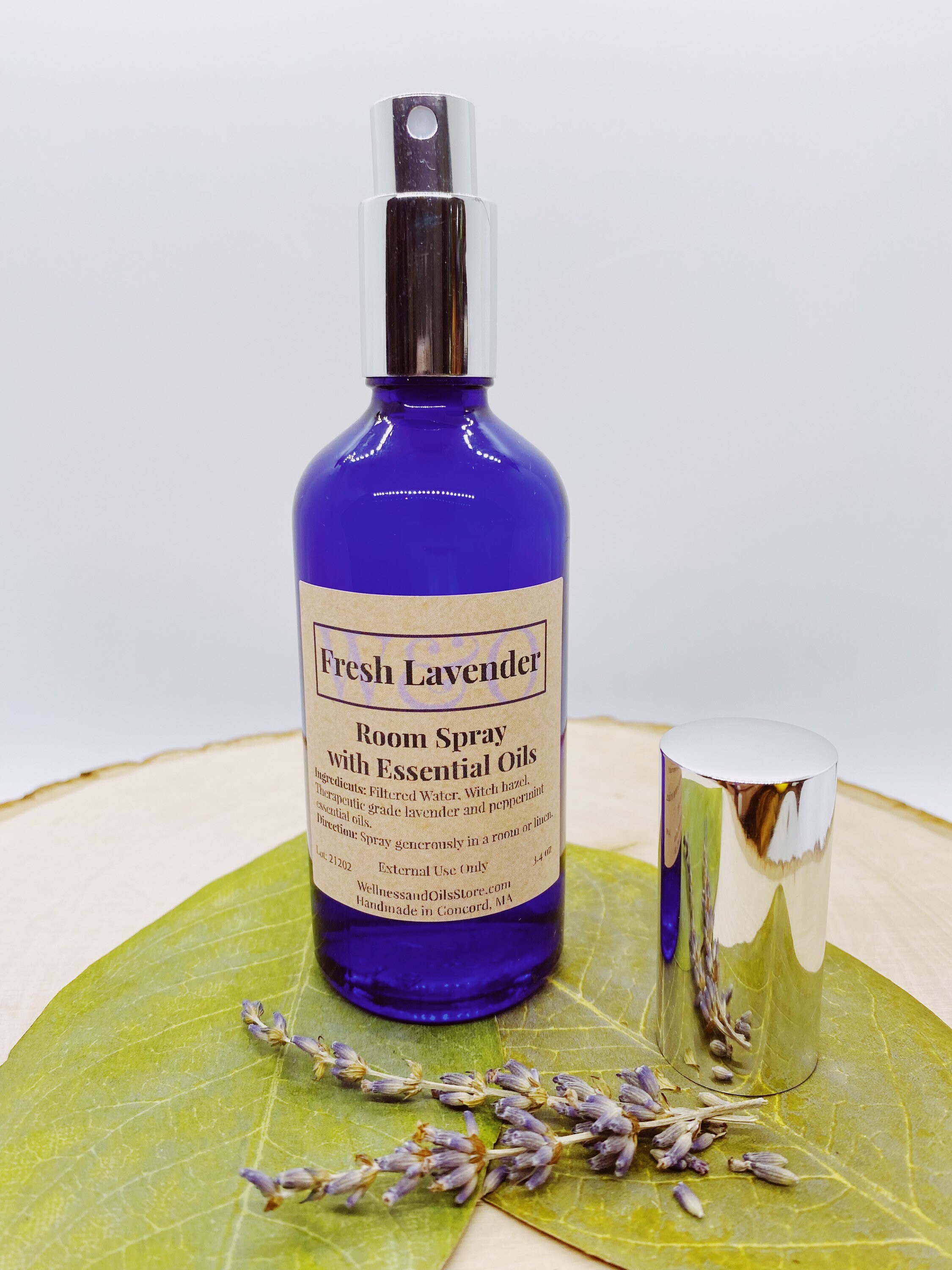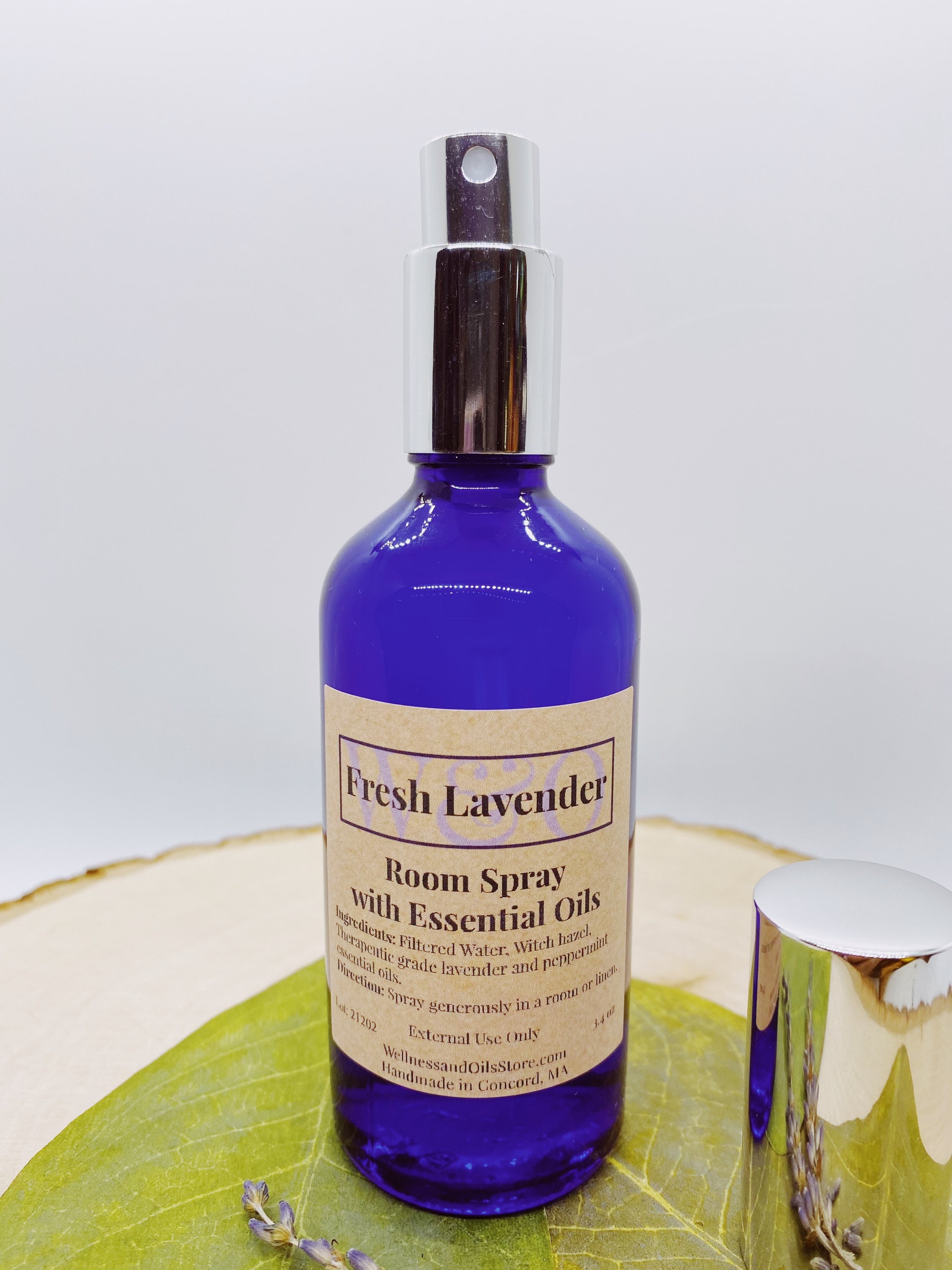 Wellness & Oils Fresh Lavender Room Spray is a perfect essential oil blend of Lavender with a note of peppermint. It is a great alternative to toxic candles. A wonderful housewarming gift or present for anyone who loves Lavender.