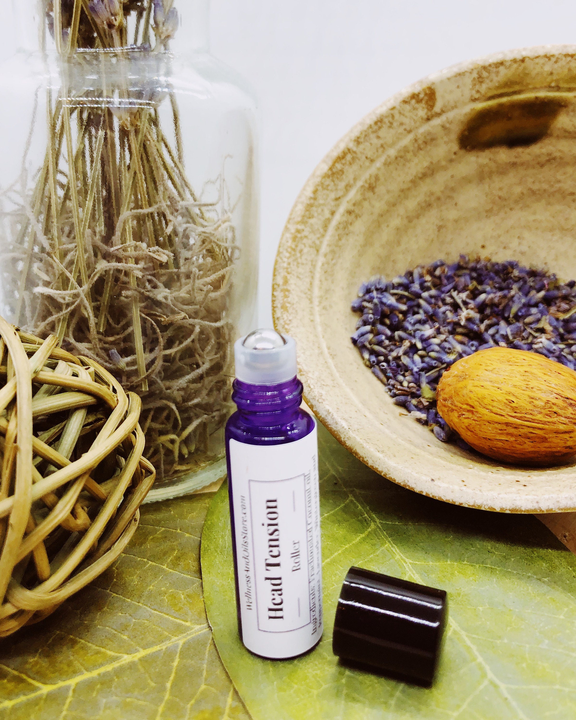 Head Tension: Fractionated Coconut oil, Peppermint, Lavender, Wintergreen and Clove therapeutic grade essential oils. How to use: Roll directly onto your temples, forehead, neck, and crown of your head at the first sign of tension. Rub the oil in gently with your fingertips for a soothing massage. Avoid applying near your eyes.