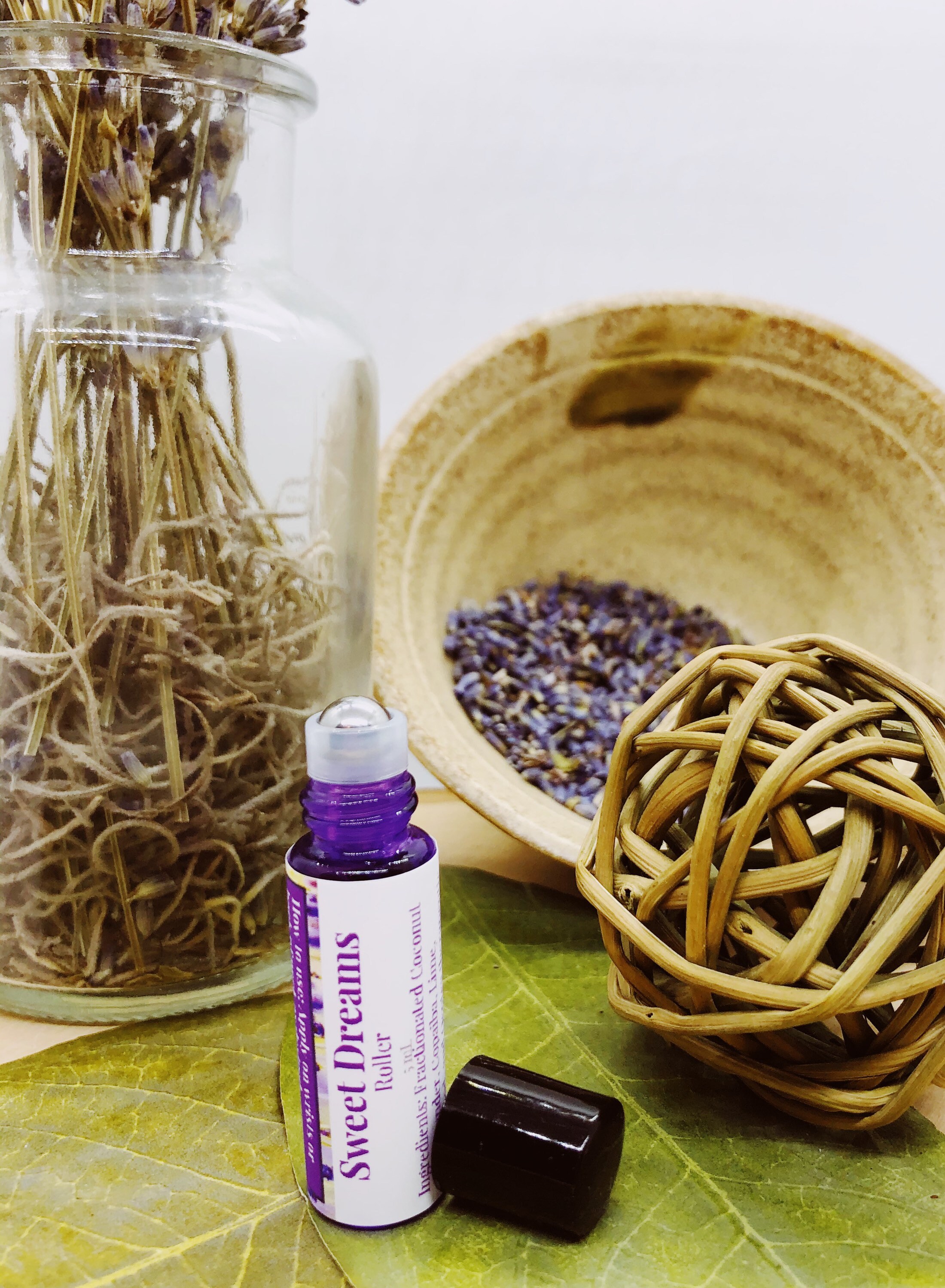 Sweet Dreams: Fractionated Coconut oil, Lavender, Copaiba, Lime, Cedarwood, and Ocotea therapeutic grade essential oils and vanilla. How to use: Shake well and apply generously on wrists or back/side of neck as desired.