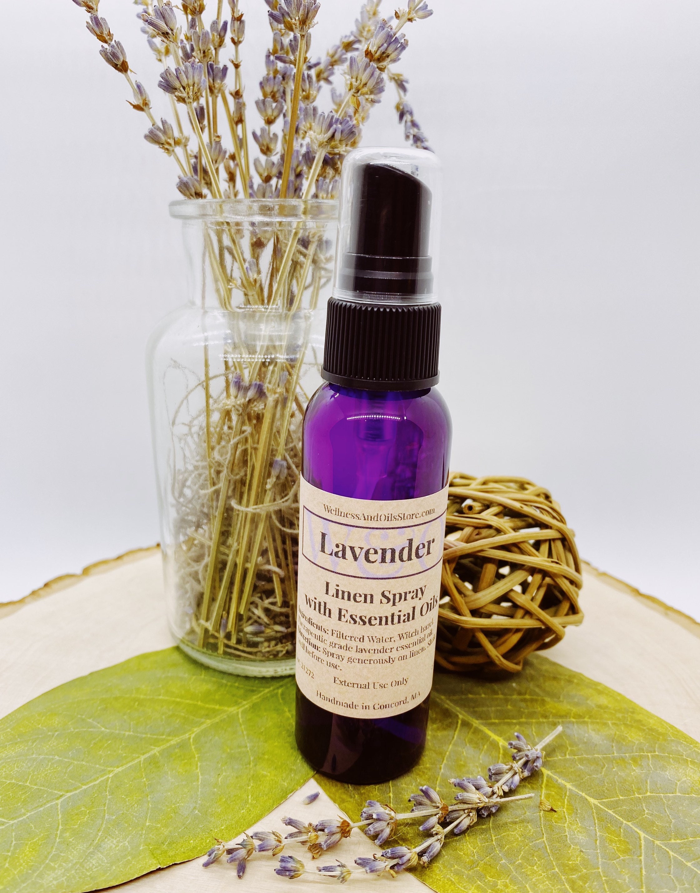 Wellness & Oils Lavender Linen Spray is a perfect to create a relaxing environment. It is all natural, and leaves the gentle and relaxing scent of lavender wherever it is sprayed.