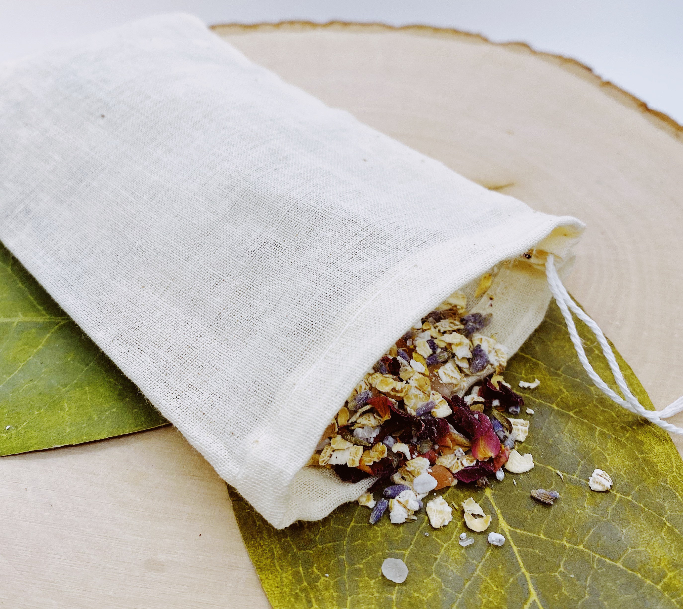 Direction: Add 3-5 scoops into the bag. Close the bag and drop it into an empty bathtub and fill with hot water so that the tea bag remains immersed. Leave the tea bag in the tub during the bath. After use: Empty, rinse and dry the bag to reuse.