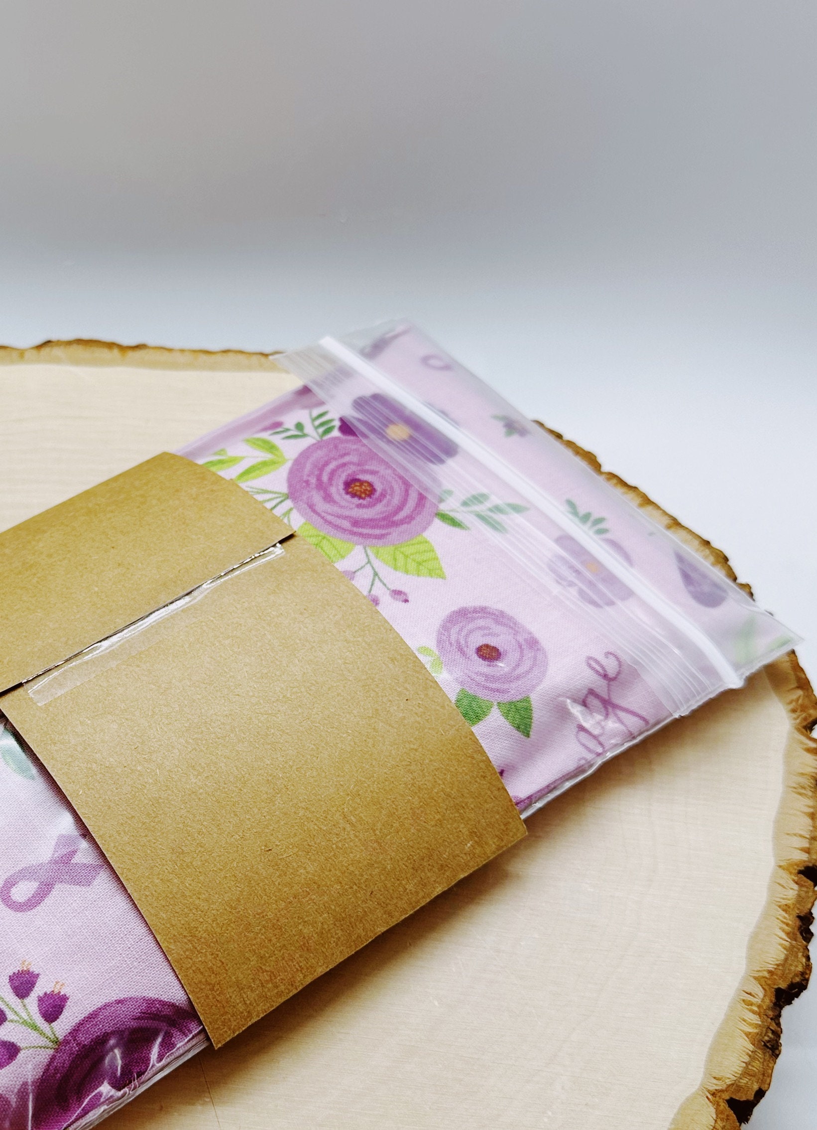 Each eye pillow is delivered in a resealable plastic bag for storage and protection of the scent.
