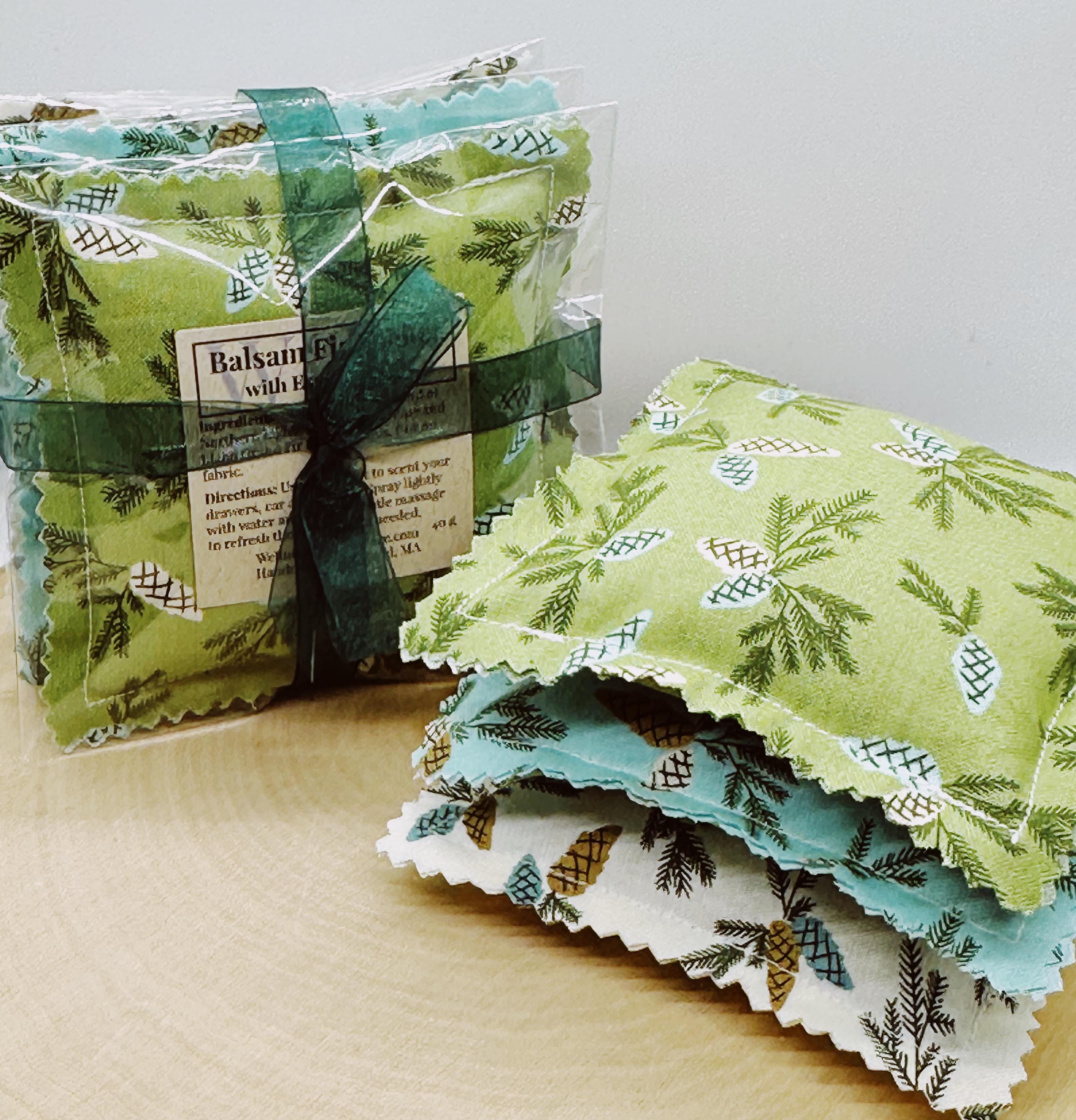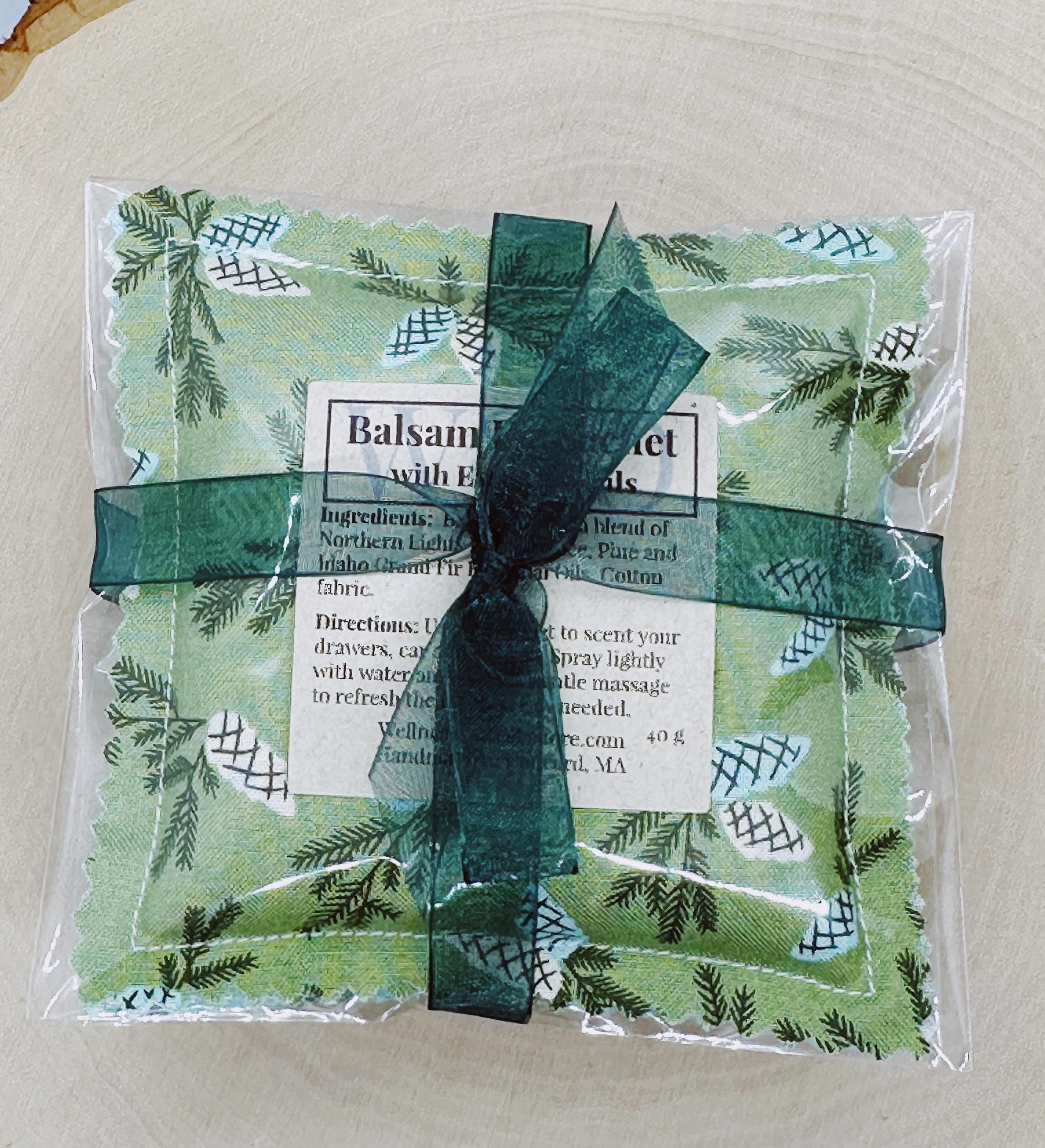 Give the comforting scents of the outdoors with our handcrafted Balsam Fir Sachets. Made with natural Maine balsam fir and a delightful blend of Northern Lights Black Spruce, Pine, and Idaho Grand Fir essential oils, these sachets evoke memories of a peaceful walk through the woods, a cozy camping trip, or the nostalgic fragrance of a Christmas tree.