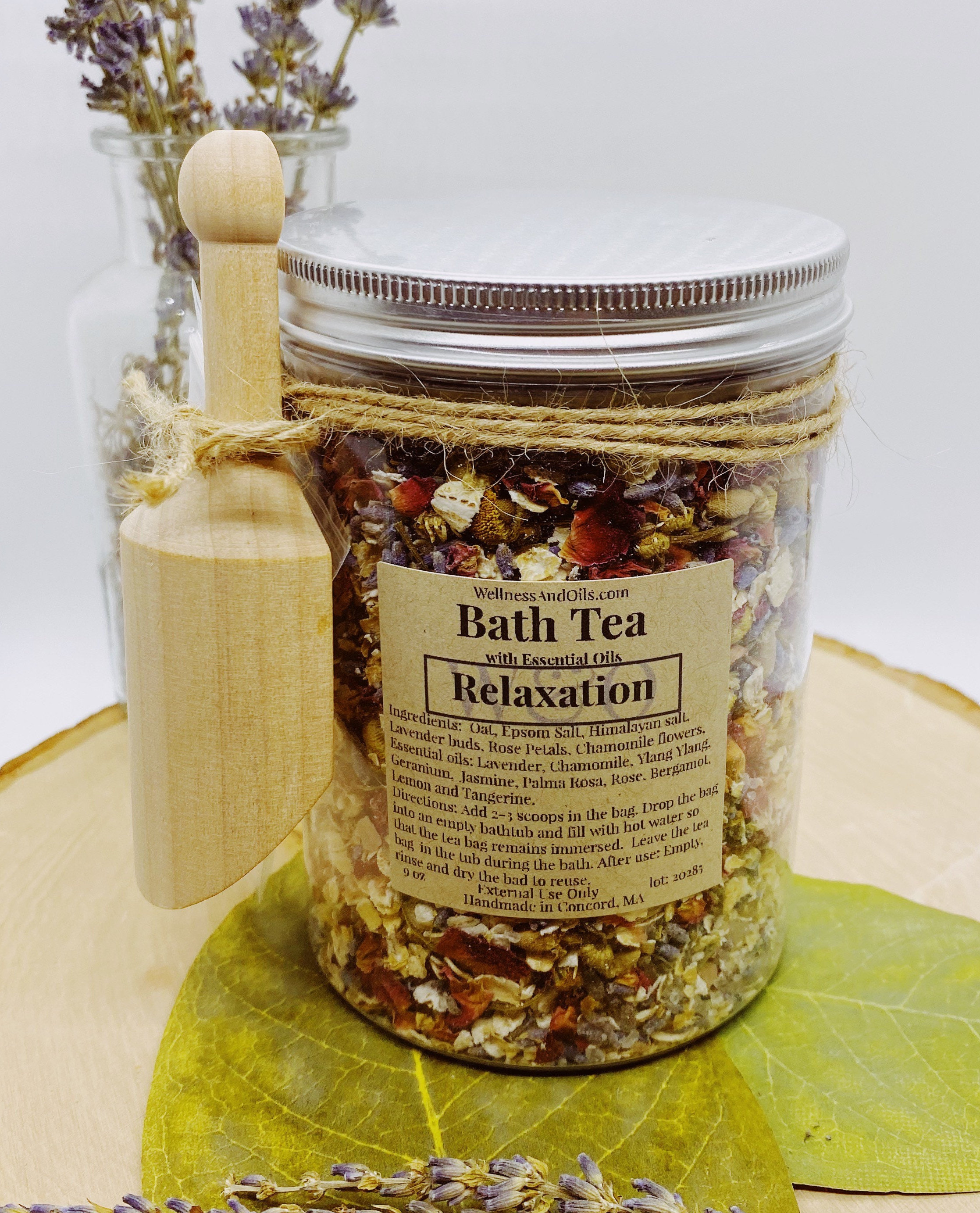 Create a SPA experience at home with this aromatic bath tea! You will find a moment of peace while nourishing your skin. This Bath tea comes in a resealable container with a wood spoon and a reusable muslin bag. Our Relaxation Bath Tea is perfect to relieve stress after a long day.